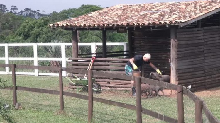 Peão conversa com os animais durante a tarefa desta quarta-feira (6)