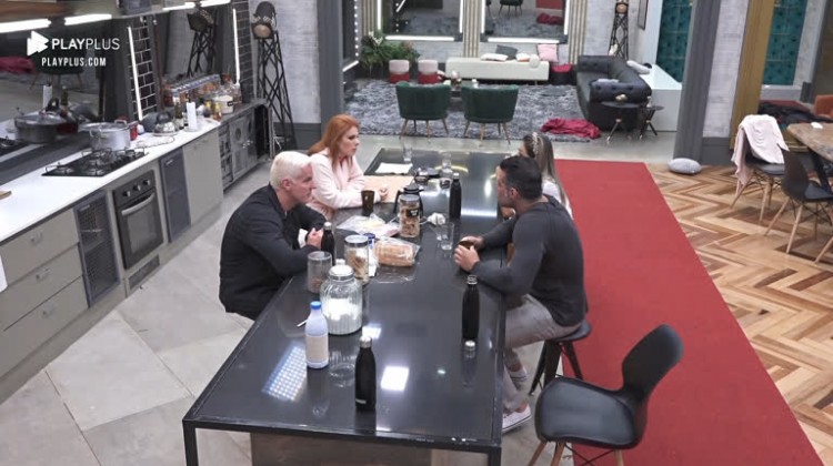 Li, JP, Bruno e Deborah conversam durante o café da manhã